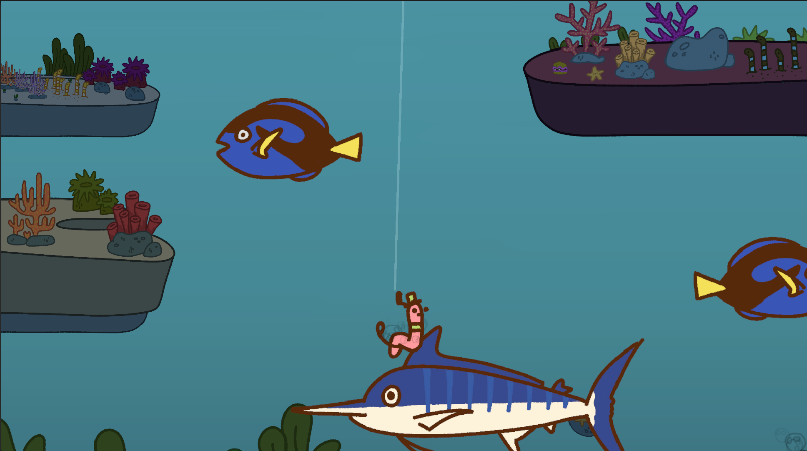 Play as a worm on a hook, trying to survive as you sink deeper and deeper into the water. This game was created for #UnpolishedJam 2025.